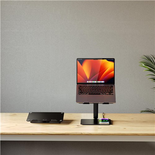 Both the height and the angle of the ALOGIC Elite Power Laptop Stand can be adjusted to ensure laptop use is perfectly comfortable. no matter where you’re working.