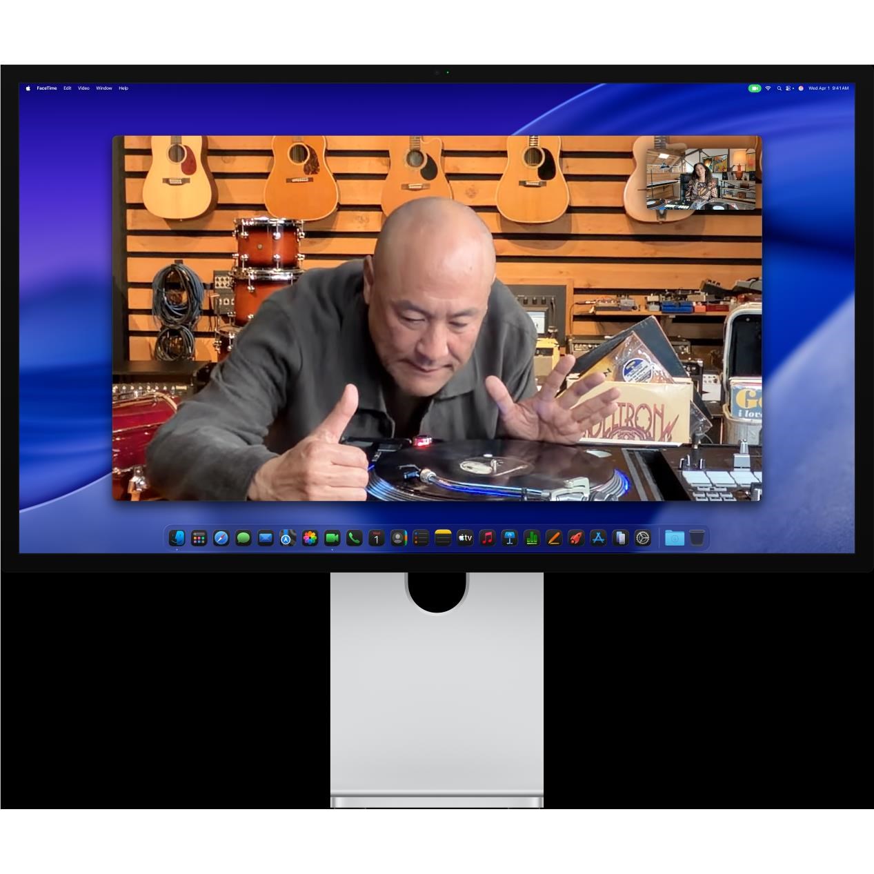 The 12MP Center Stage camera helps you look sharp in any light during video calls. Desk View lets you share a top-down view of your workspace. And a studio-quality three-mic array ensures you come through clearly.