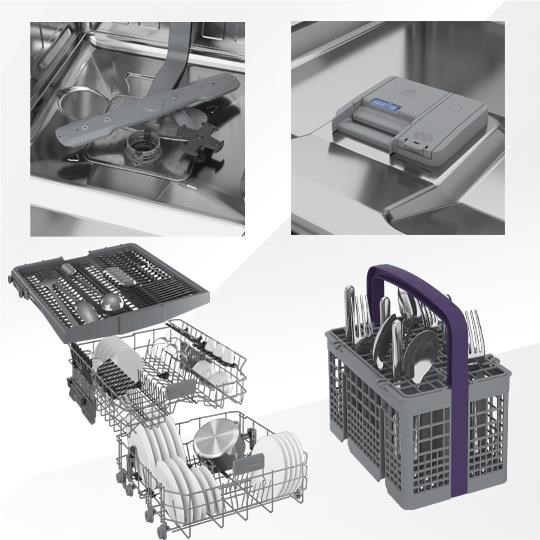 Perfect for big. busy families. The flexibility of the top cutlery tray. unique shape of the top basket and foldable tines throughout the dishwasher provides a large capacity and allows you to fit more in… so you can fit it all in. in one wash.