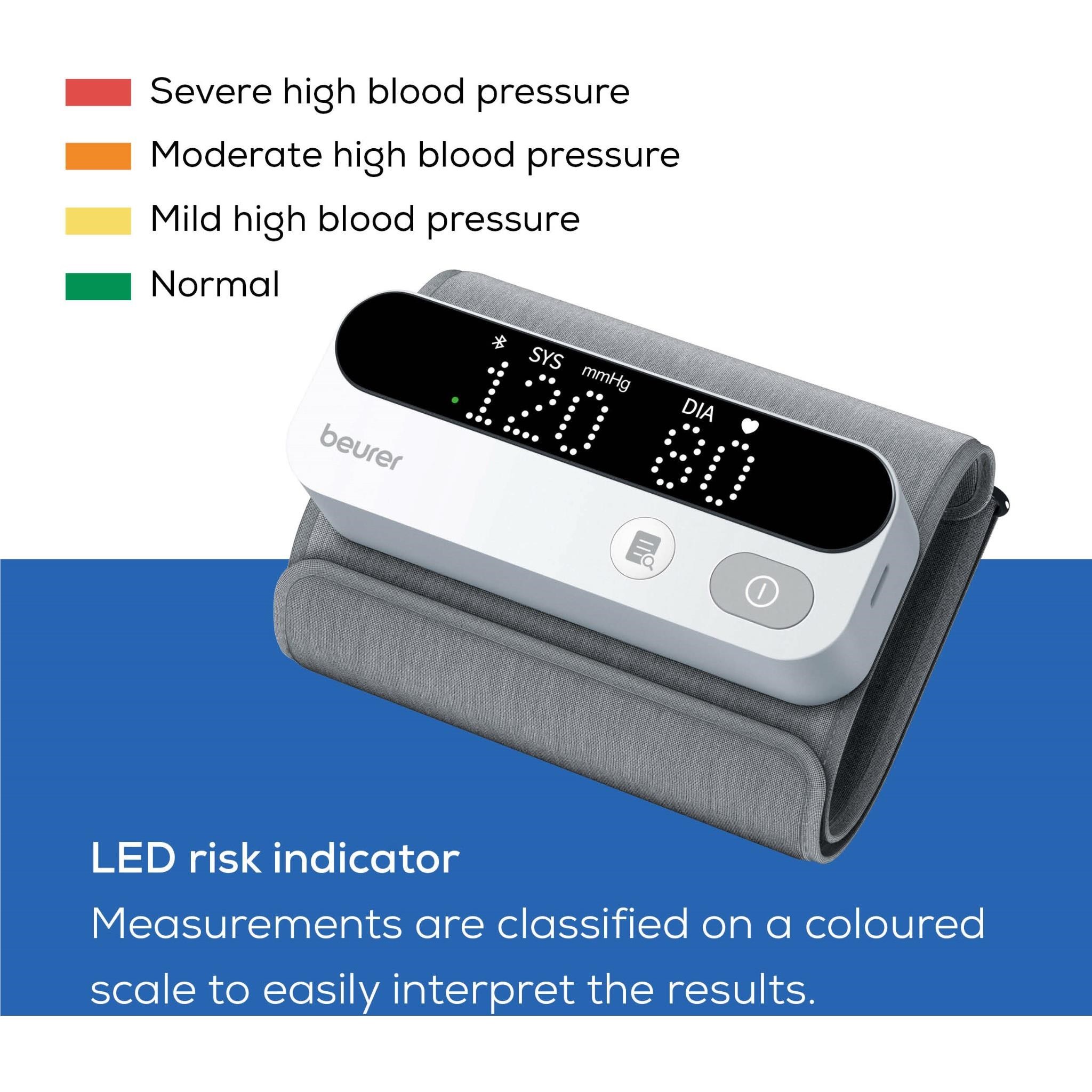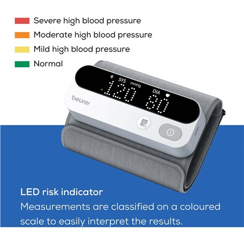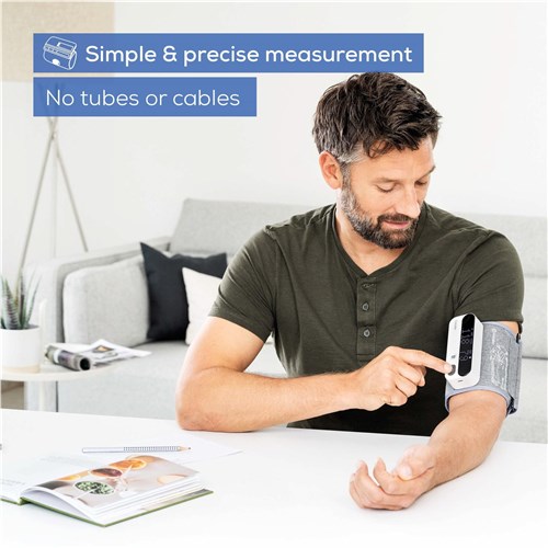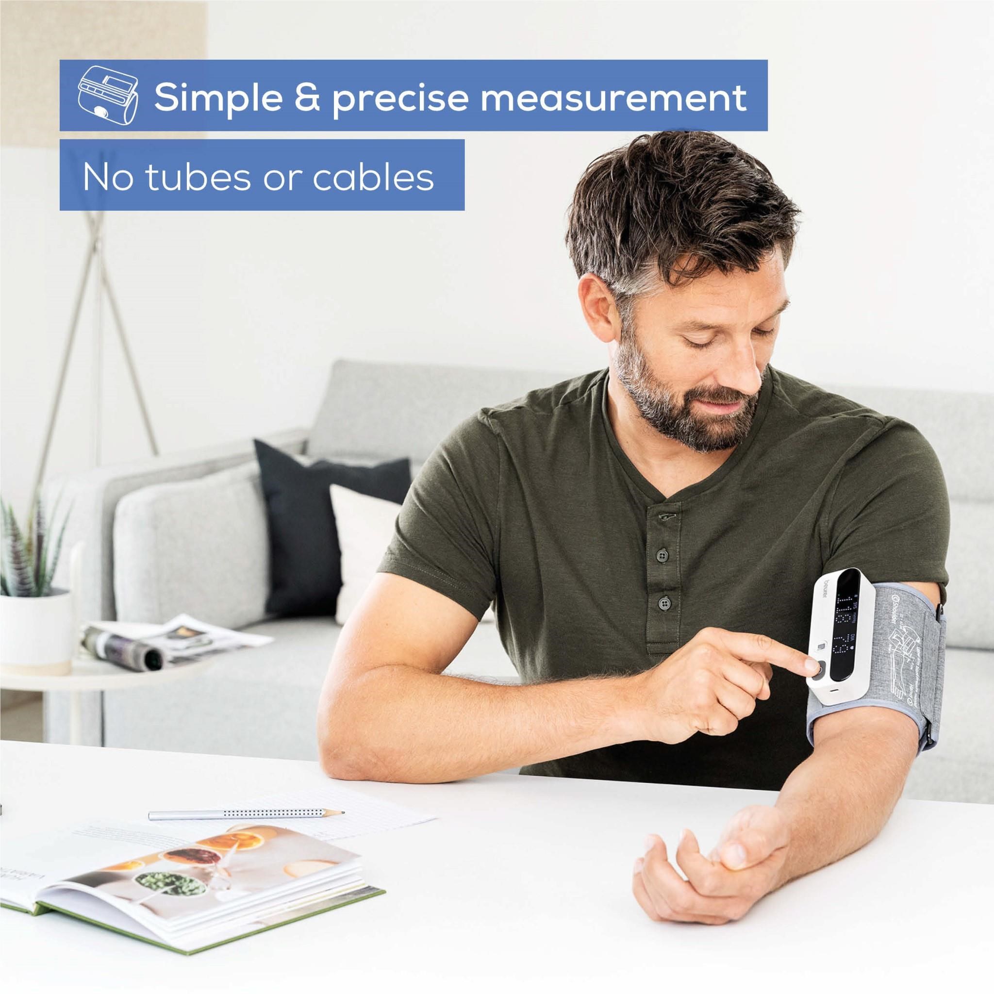 With the Beurer BM 59 Upper Arm Blood Pressure Monitor. annoying tubes and cables are a thing of the past. The cuff is attached directly to the device and enables quick and easy measurement. The measured values can be conveniently transferred to the free “beurer HealthManager Pro” app and monitored long-term.