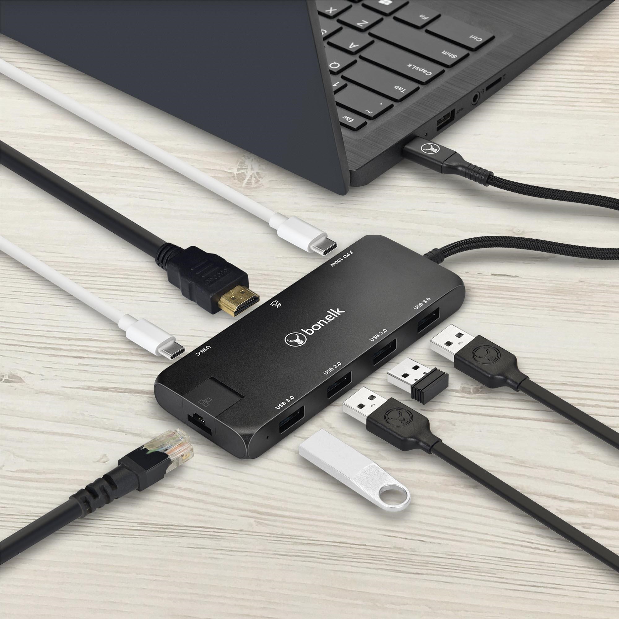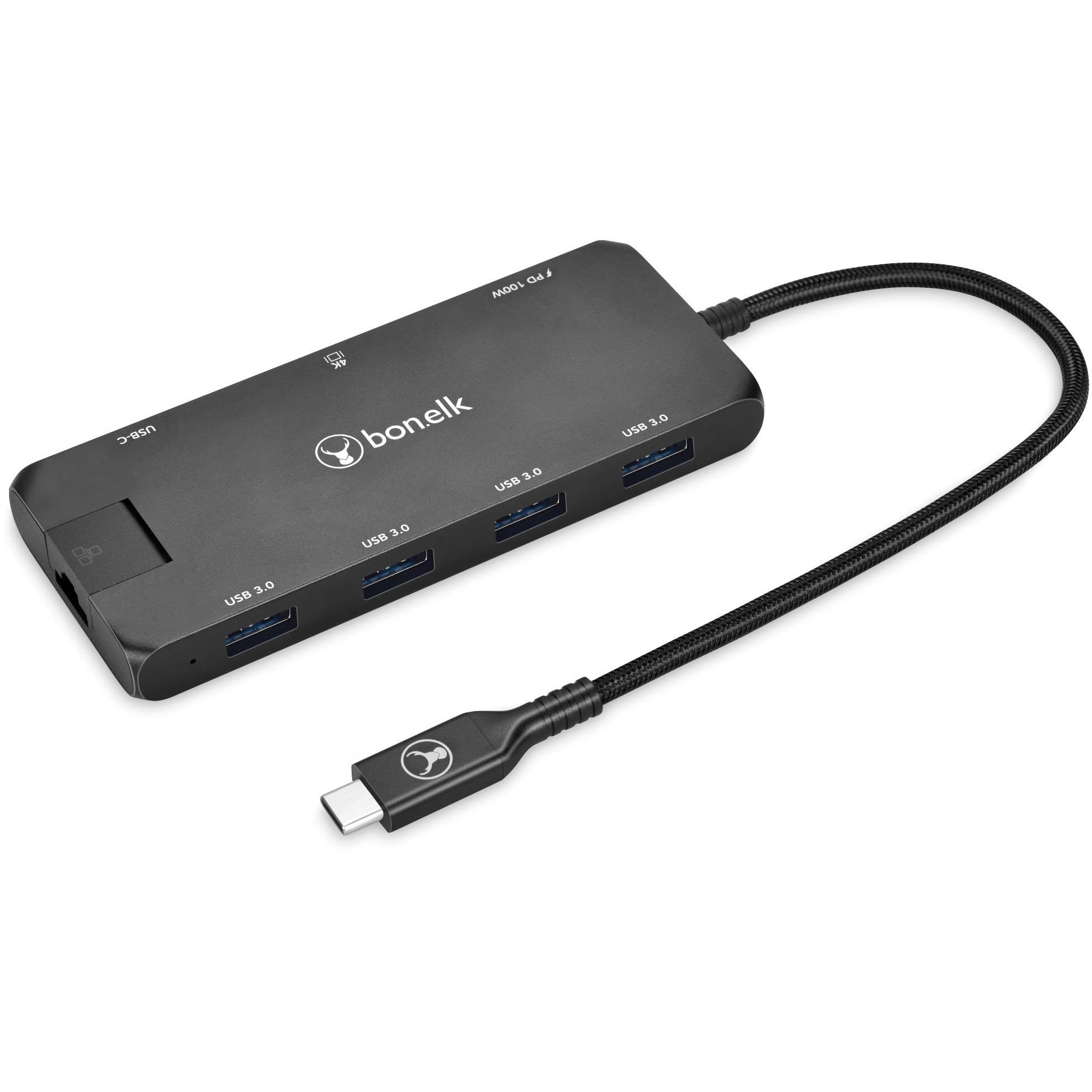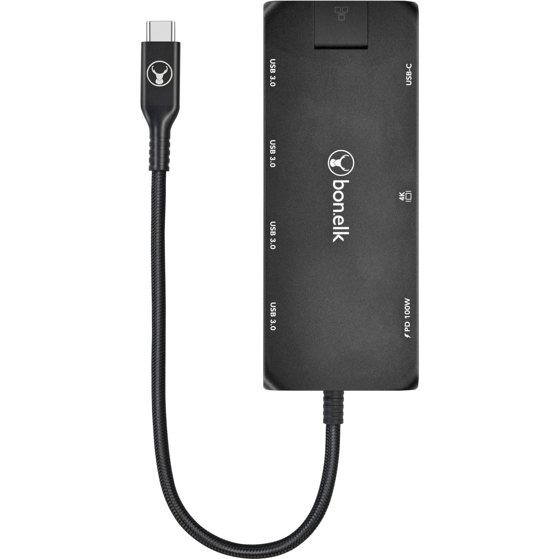 Bonelk Long-Life 8-in-1 Multiport USB-C Hub (Black)