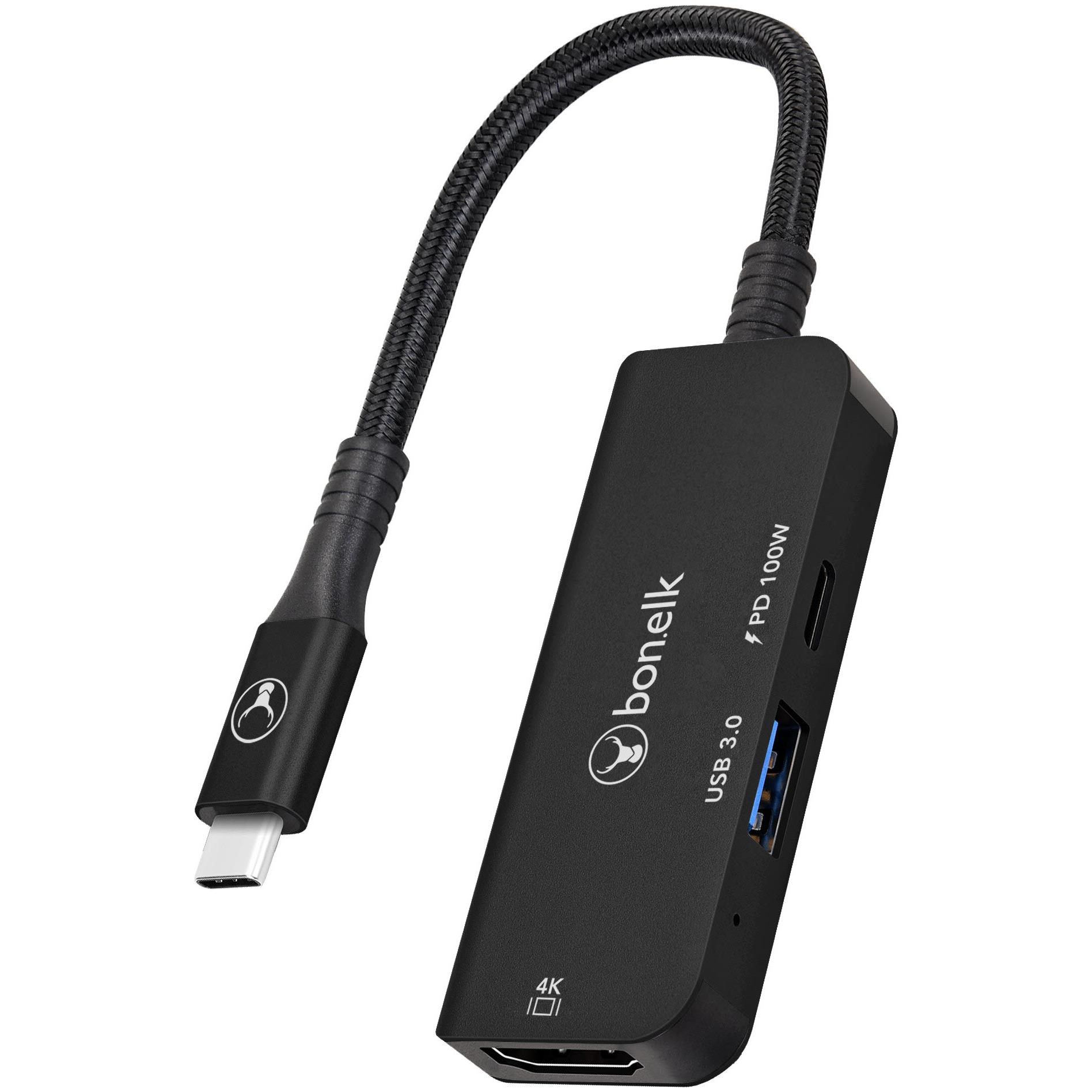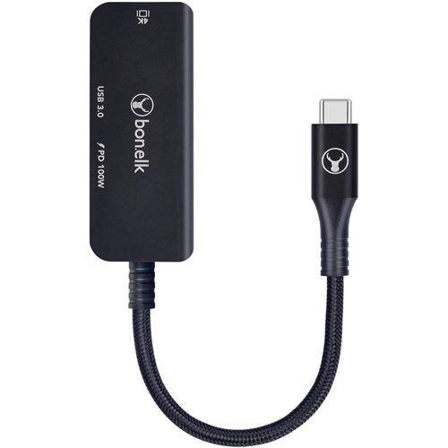 The Bonelk USB-C 3in1 Multiport Hub is a great solution to add 4K HDMI. USB-C PD 100W charging & USB-A 3.0 input to your laptop. smart device or desktop computer. Built using high quality materials and intelligent electronics. Features 1x 4K HDMI / USB-C 100W PD and USB-A 3.0 port that supports 5Gbps transfer speeds. encased in a premium grade aluminium housing.