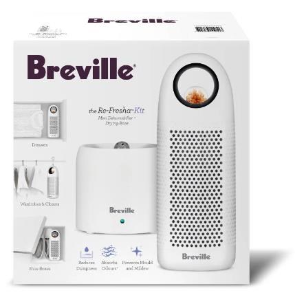 The Breville Re-Fresha™ Mini Dehumidifier Kit is a rechargeable moisture absorbing solution perfect for small and compact spaces. The Re-Fresha™ Kit is made up of a mini dehumidifier and a drying base. allowing the mini dehumidifier to be used again and again. Also available for purchase is the Re-Fresha™ Add On. the mini dehumidifier on its own so you can have multiple units working around the home to reduce mould and mildew in wardrobes. cupboards and drawers.