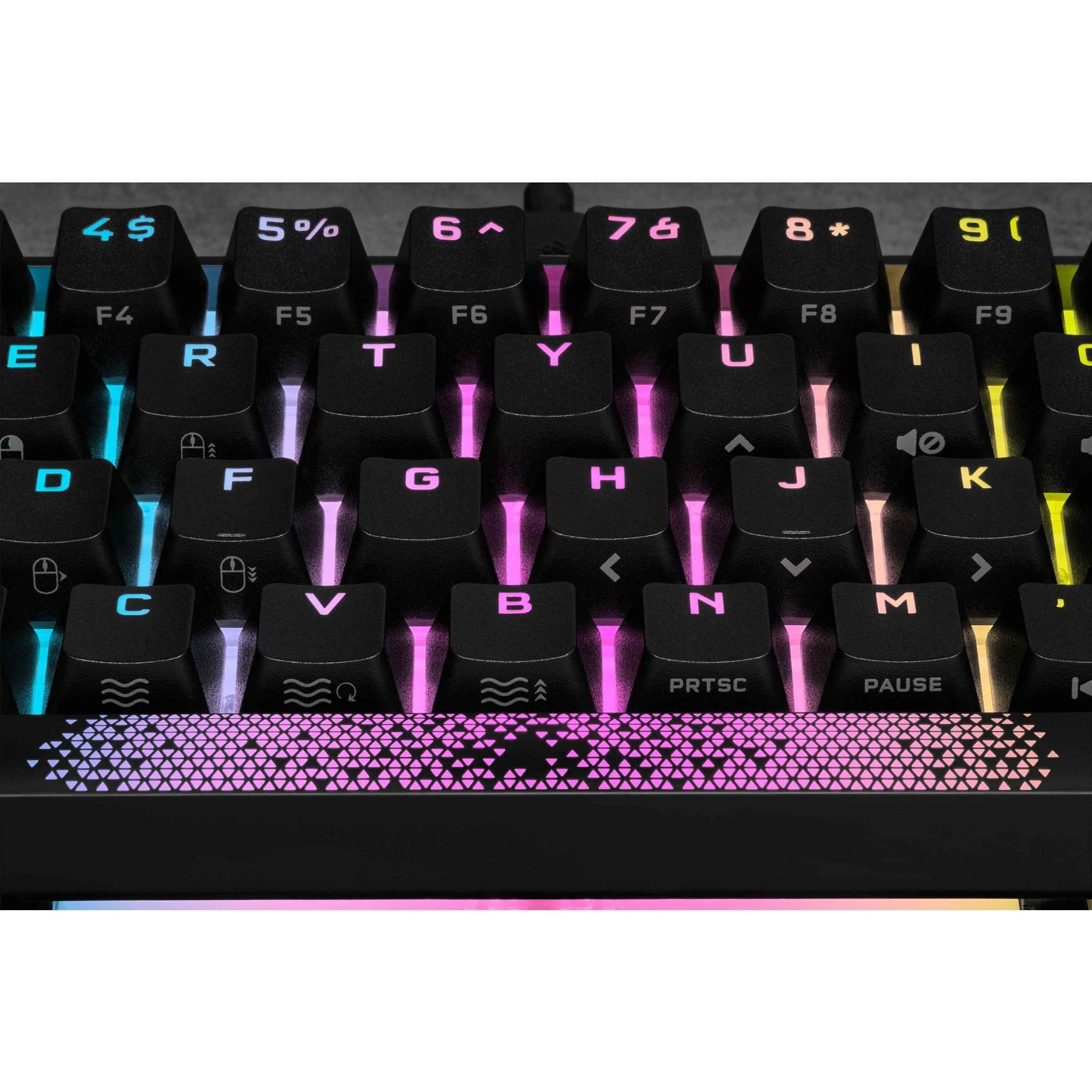 Personalize Your Play: Show off your style with dynamic per-key RGB backlighting as well as an optional included radiant spacebar and CORSAIR logo key. along with a standard bottom row layout so you can swap in your own custom keycaps sets.