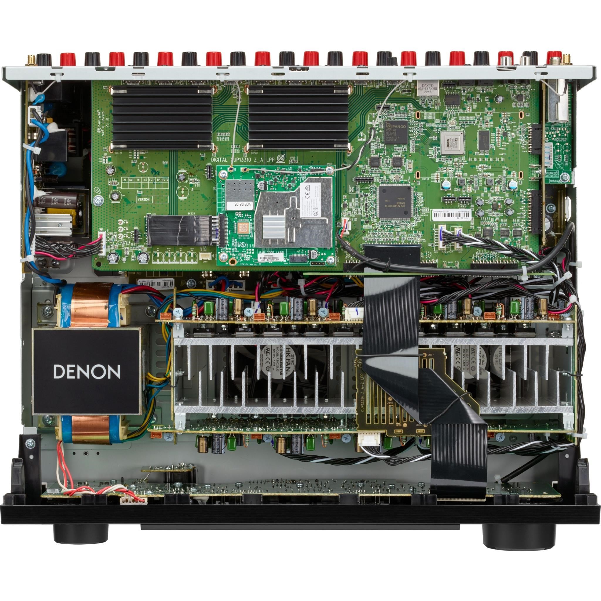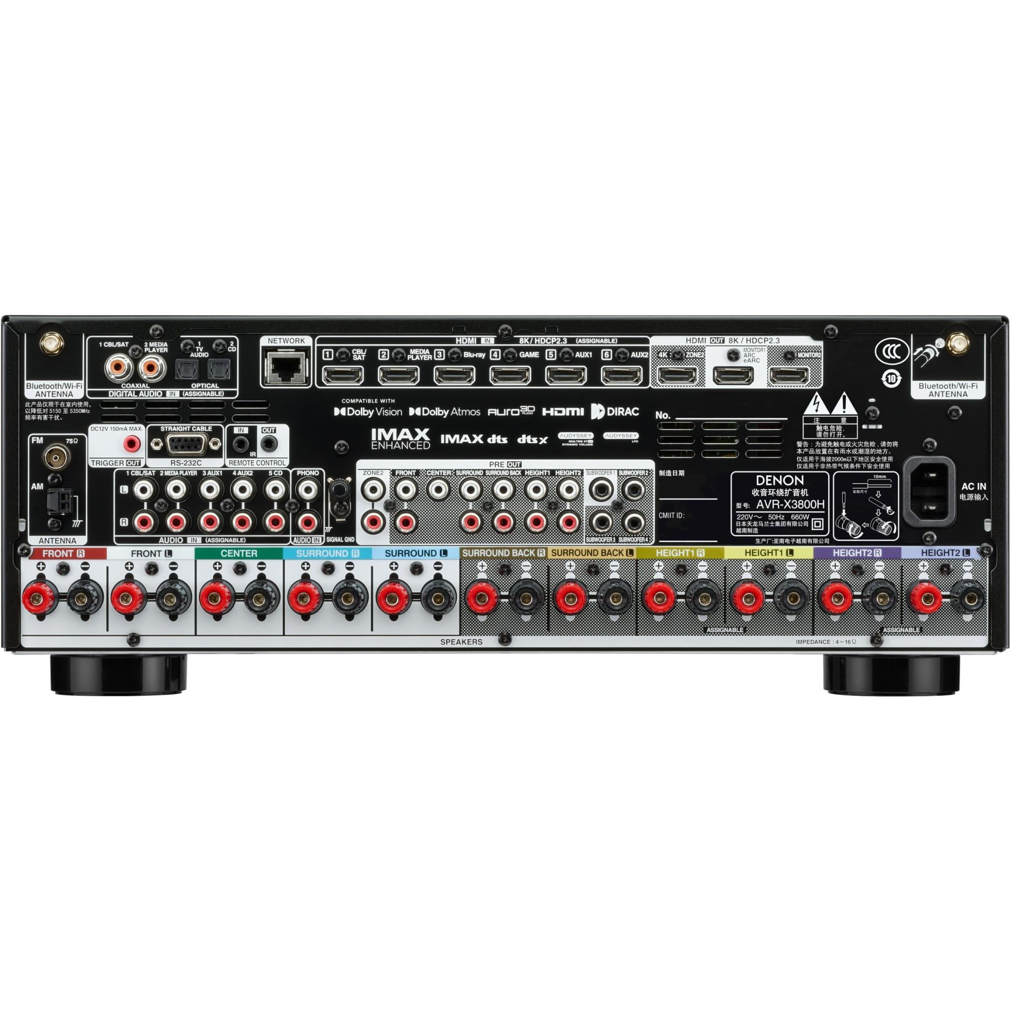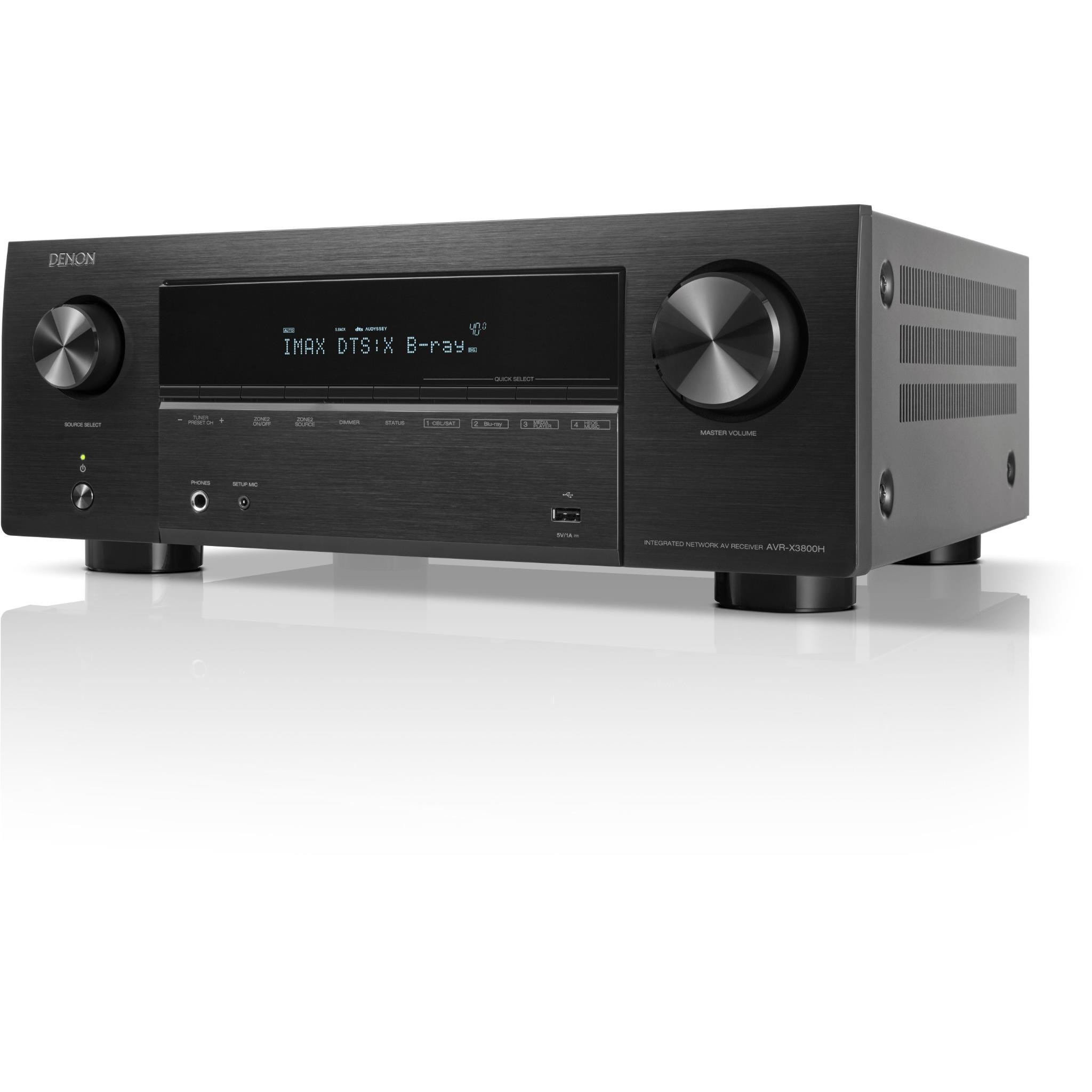 Powering 180W per channel. the Denon AVC-X3800H 9.4 channel 8K AV amplifier delivers an enveloping 3D audio experience and amazing picture quality thanks to Dolby Atmos®. DTS:X®. and the latest HDMI technology featuring HDR10+. Dolby Vision™. and 8K video. Powered by HEOS® Built-in. access streaming music services and share with HEOS-enabled speakers in other rooms. With flexibility to set up the best speaker arrangement for your space and Audyssey MultEQ XT32 room correction technology to optimize the sound. we made this AV amplifier to meet the demands of home theatre enthusiasts. like you.