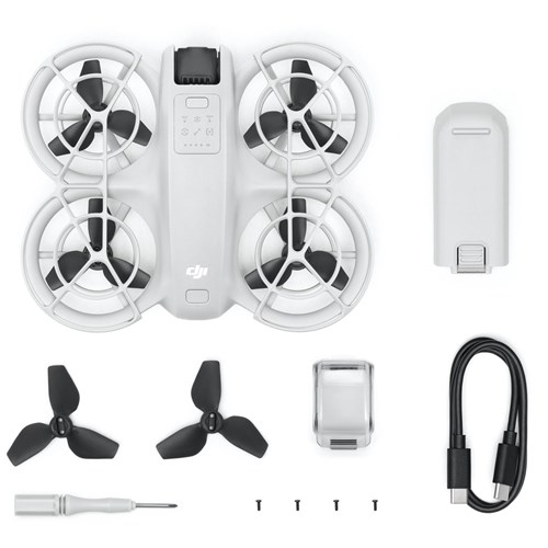 DJI Neo comes with the aircraft. an intelligent flight battery. propeller guards. and more. enabling you to swiftly dive into the thrill of flight at an affordable entry price—making it an exceptional deal for novices. You can also purchase batteries separately to extend flight time and power up your fun.