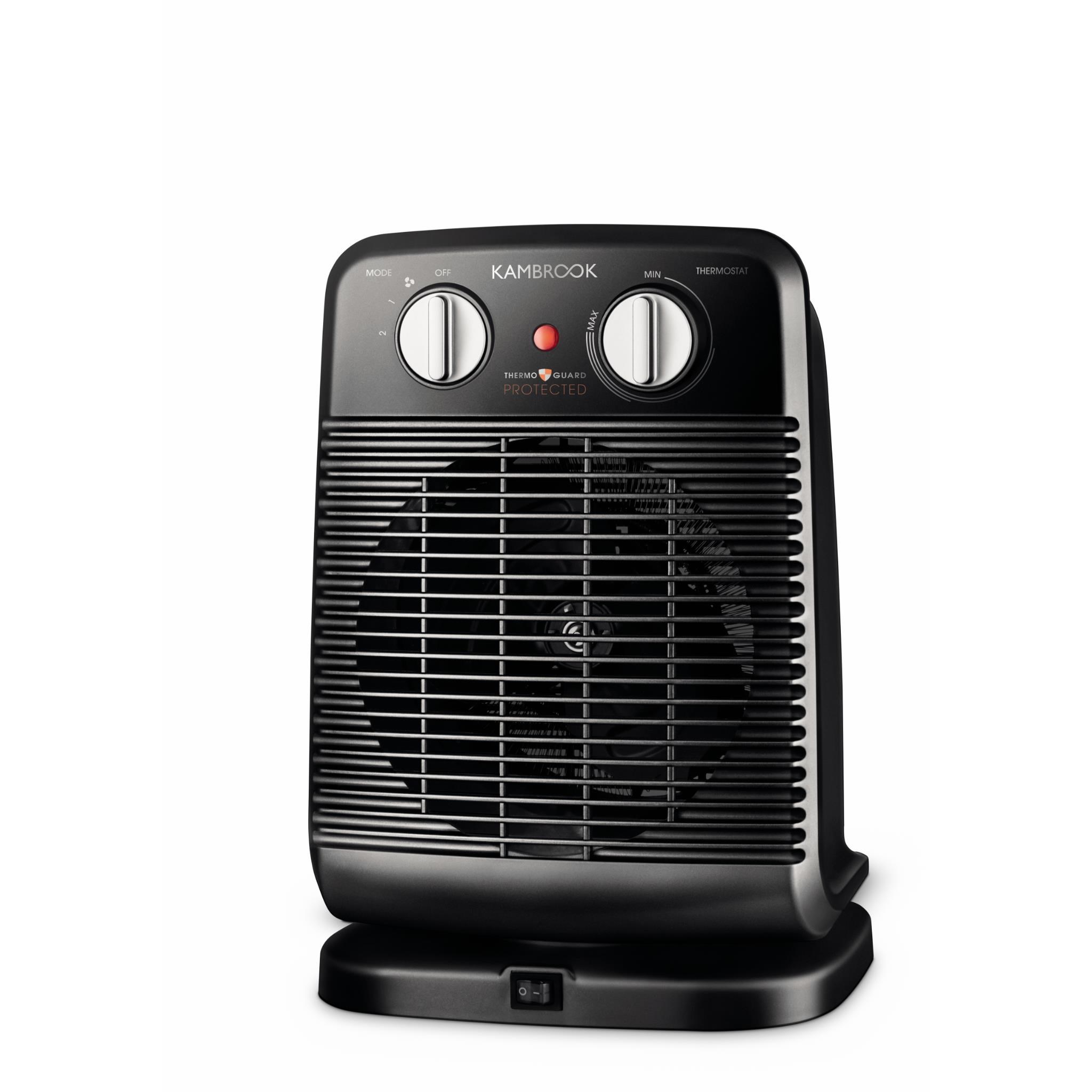 Keep cosy and warm all winter long with Kambrook. This handy Oscillating Fan Heater heats-up fast - perfect for use in small spaces - and includes 2 settings. variable thermostat controls. and fan only functionality. allowing you set and maintain the perfect temperature and circulate it throughout the room. Plus. with a safety tip-over switch and ThermoGuard overheat protection. you can warm up with total peace of mind!