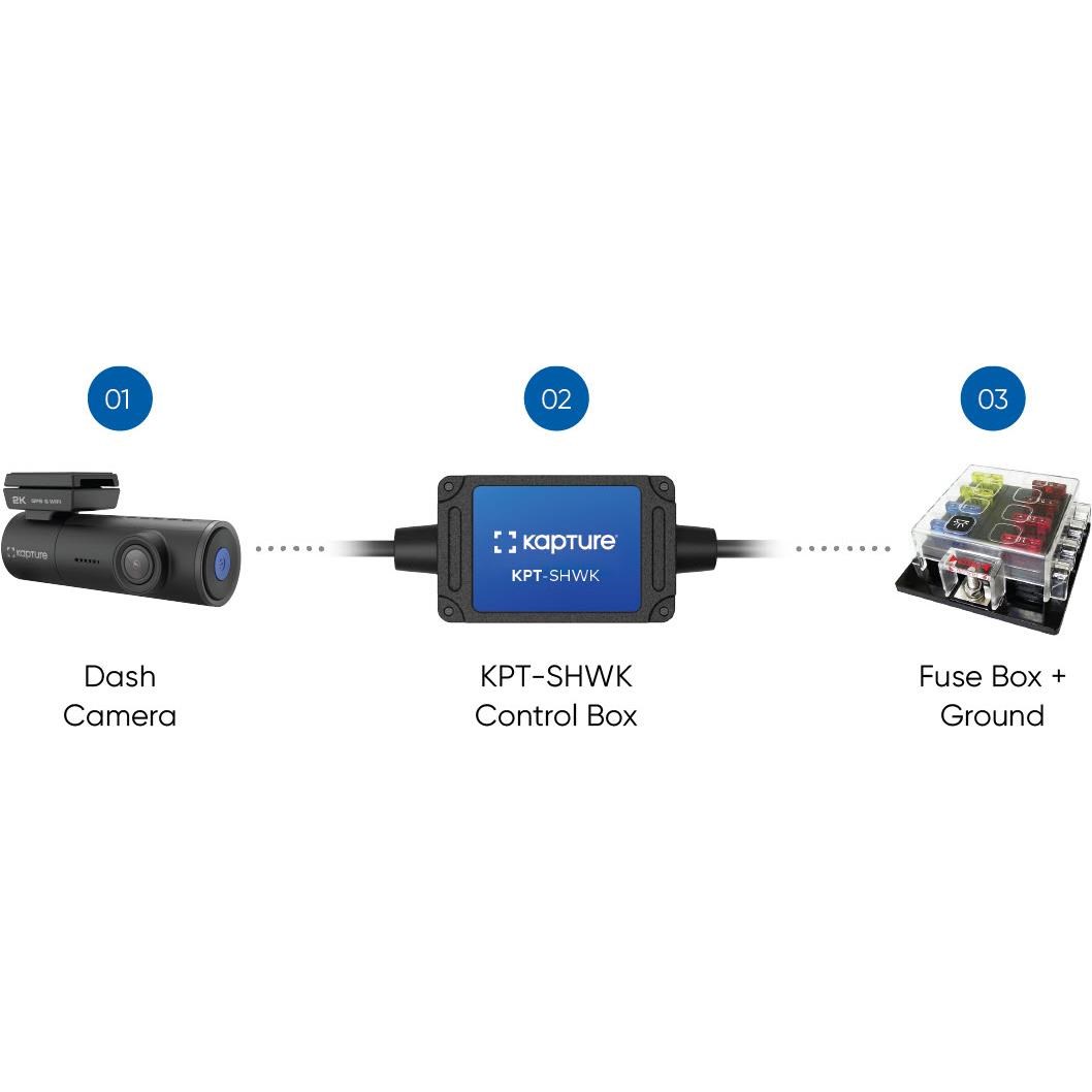 Compatible for use with most modern smart Stop/Start systems and servos. the KPT-SHWK enables constant power to be delivered to dash cameras to allow them to operate even when the vehicle engine is turned off. The 3-Wire Hardwire Kit will also automatically detect when the vehicle is in park mode to ensure a smooth transition of power. The Kit is equipped with four different fuse tap sizes for fuse box connection. features multiple cut-off voltages to prevent battery drainage from dash camera operations and is suitable for use with passenger. commercial and utility vehicles with its 12V/24V input voltage. Not least. the Kit works with all Kapture dash cameras and any dash camera with a mini USB or Type-C connector.