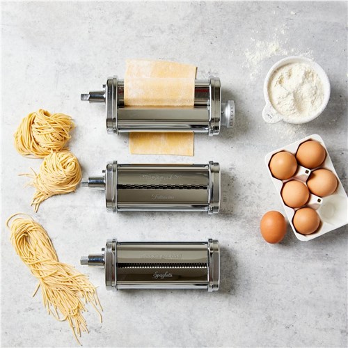 The 3-Piece Pasta Roller and Cutter Set makes authentic. fresh pasta. quickly and easily from scratch. Powered by the KitchenAid Stand Mixer.