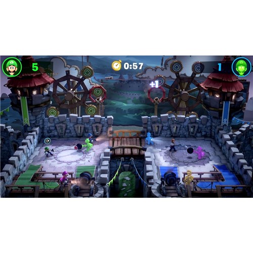 Wield the upgraded Poltergust G-00 to slam and blow away the ghosts’ defences. or summon Gooigi. an all-green doppelganger that can help Luigi overcome obstacles he can’t get past alone. Interchange between Luigi and Gooigi as one player. or grab a friend and control one each.