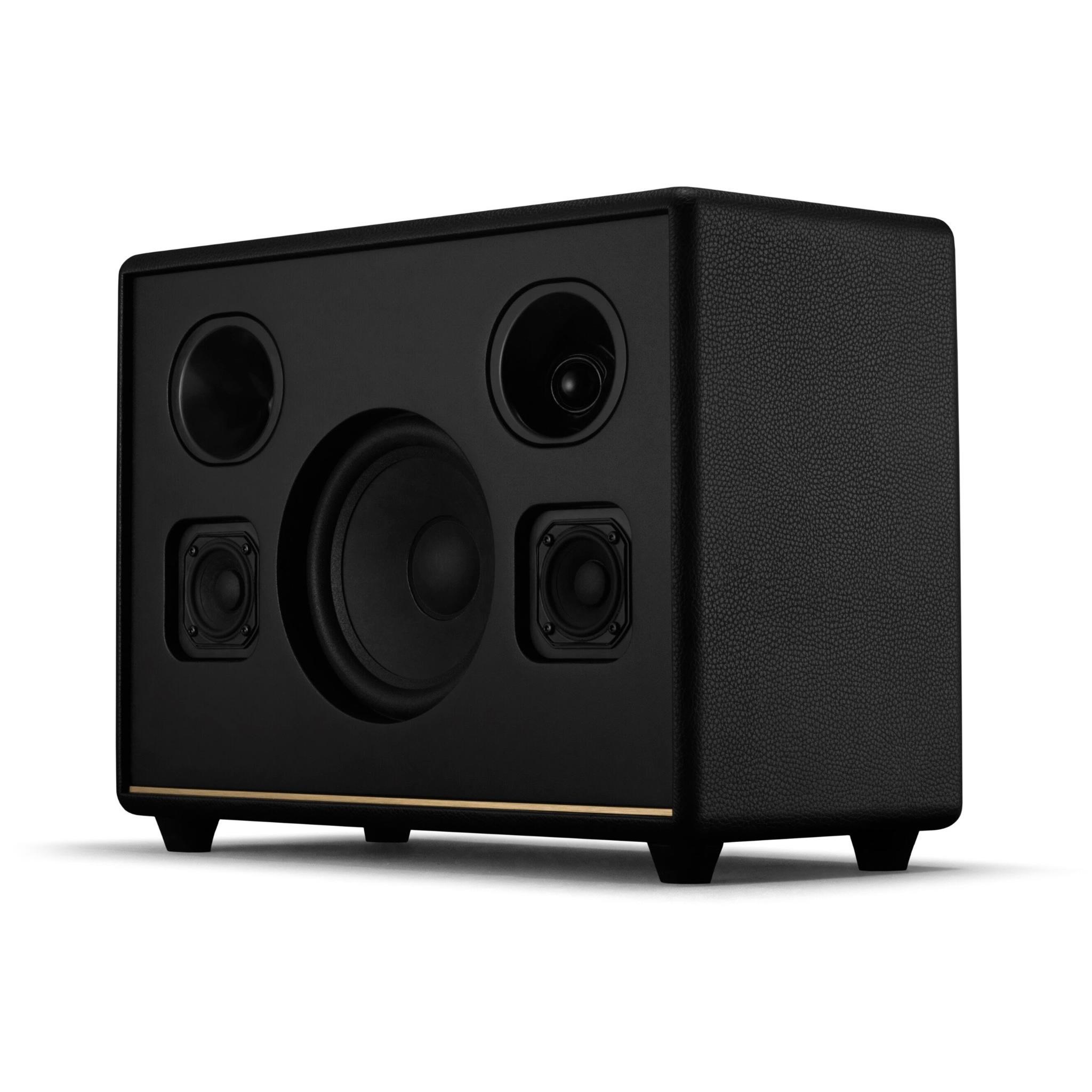 As the heavyweight speaker of the home line-up. Woburn III is guaranteed to fill any space with immersive. home-shaking Marshall signature sound. Woburn III has been re-engineered with a three-way driver system. with a more powerful 6” woofer in a bass-reflex cabinet (tuned lower than previous generations). two 3/4” tweeters and the addition of two 2” midrange drivers. This updated system delivers greater clarity in the midrange. crisp treble and more controlled bass that is so low it nearly reaches the lowest frequency perceivable by the human ear. Angled tweeters and updated waveguides have been added to deliver a consistently solid sound that is so wide it chases you around the room. Built-in Dynamic Loudness adjusts the tonal balance of the sound. ensuring your music sounds brilliant at every volume. Woburn III is ready for the future of Bluetooth technology and has been built ready to deliver next-generation Bluetooth features the moment they are available.