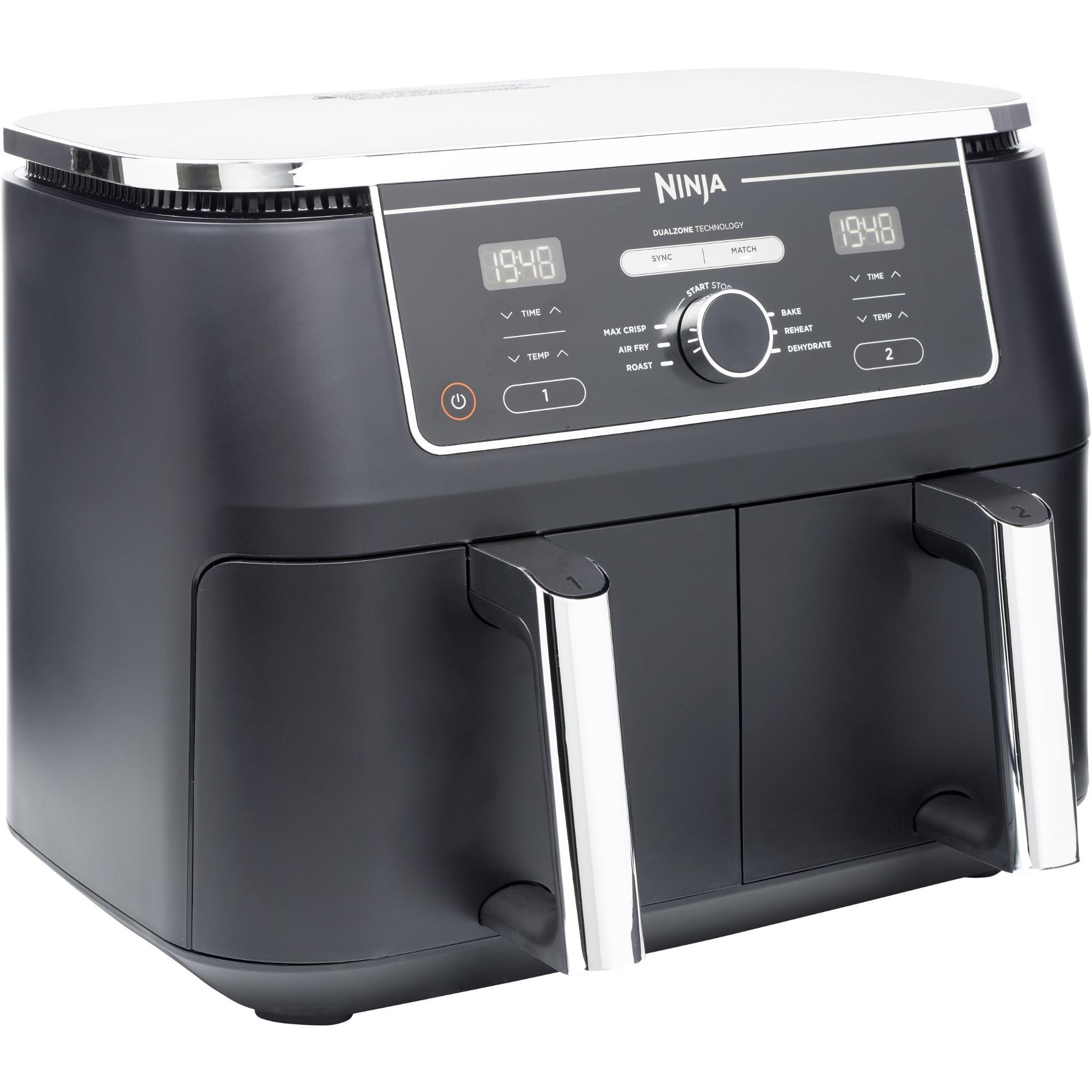 Take mealtimes to the MAX with the Ninja Foodi Max XXXL Dual Zone 9.5 Litre Air Fryer. The large capacity is more than an air fryer with 6 ways to cook. You can Max crisp. roast. bake. reheat. dehydrate and air fry. DualZone Technology allows you to SYNC so you can cook different foods in each draw and cook them 2 different ways with both to finish at the same time. MATCH Cook to easily copy settings across zones for full us of the 9.5 litre capacity. This air fryer includes 6 versatile cooking functions. Perfect for large family meals and entertaining!