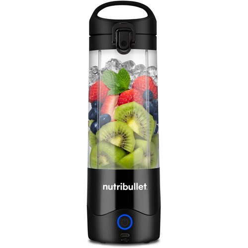 Hit the road with the nutribullet® Portable Blender. an on-the-go blender that mixes smoothies. protein shakes. party drinks and more. wherever you happen to be. Charged via USB-C. this blender is designed for optimum portability. with a handled lid and a battery equipped to power through 15+ blending cycles per charge. The convenient handled flip-and-sip lid design lets you easily transport and drink your creations. sans spillage. Equipped with an extra-large 590ml blending cup. yet still compact and lightweight. This little blender is designed to go wherever you do!