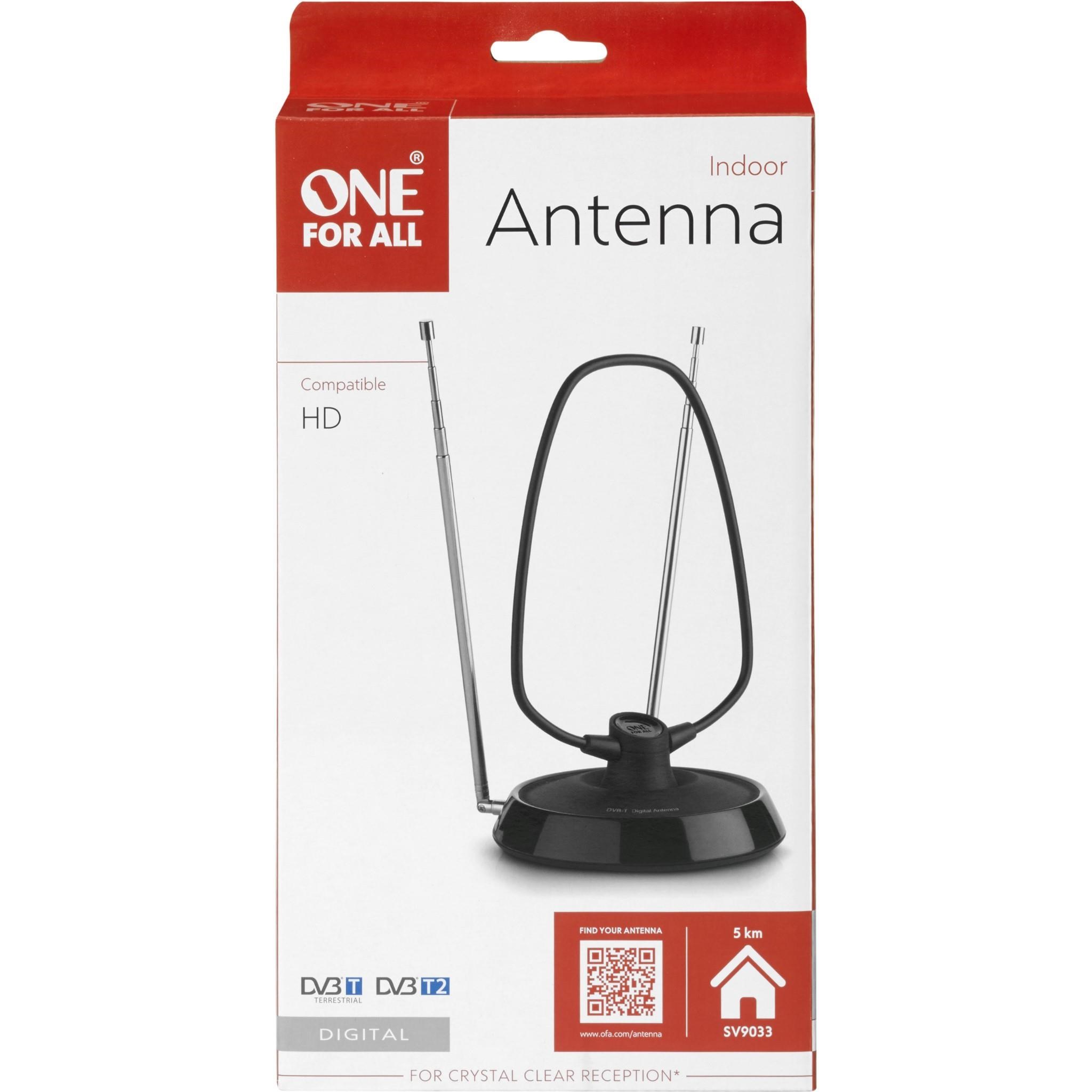This indoor antenna is compatible with DVB-T/T2 programmes broadcast in HD format.