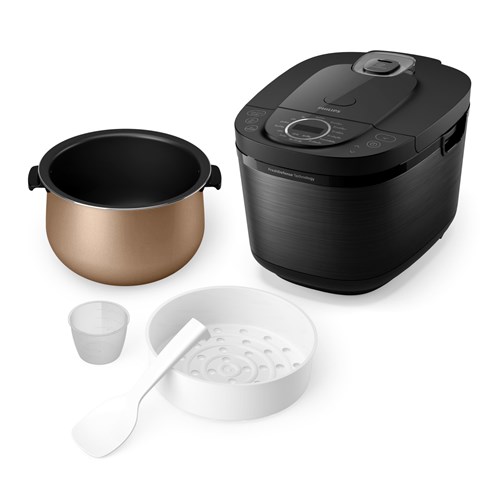 Prepare perfect. fluffy rice for up to 10 people with just the touch of a button and worry-free cooking with food-grade materials and certified by international authorities. PFOA. BFR and PVC free.