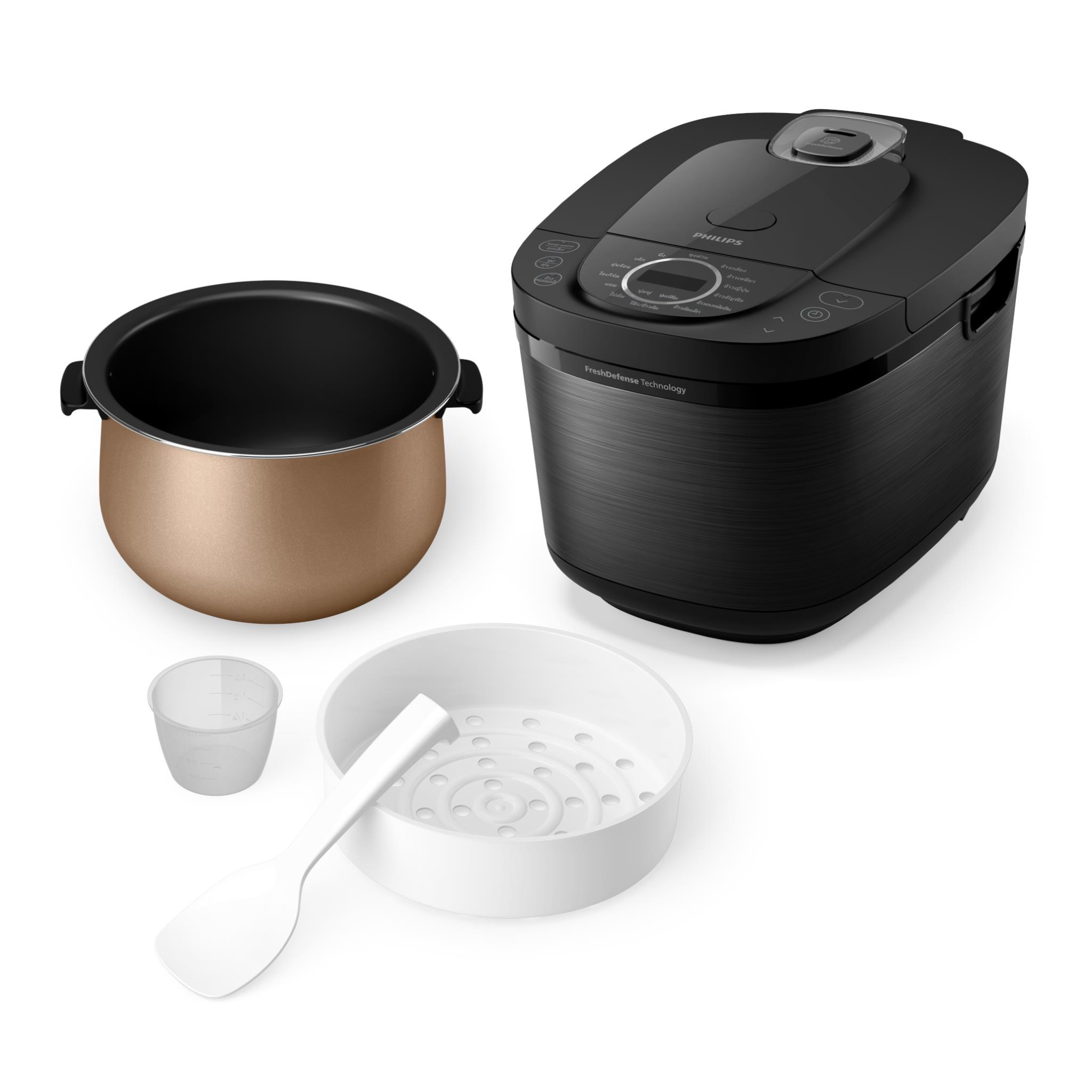 Lock in the perfect level of moisture for white and fluffy rice. Thanks to our innovative FreshDefense technology. featuring a specially designed dual-channel steam valve that seals in extra moisture. the freshness of the rice remains at the ideal 63%* moisture level throughout the day!