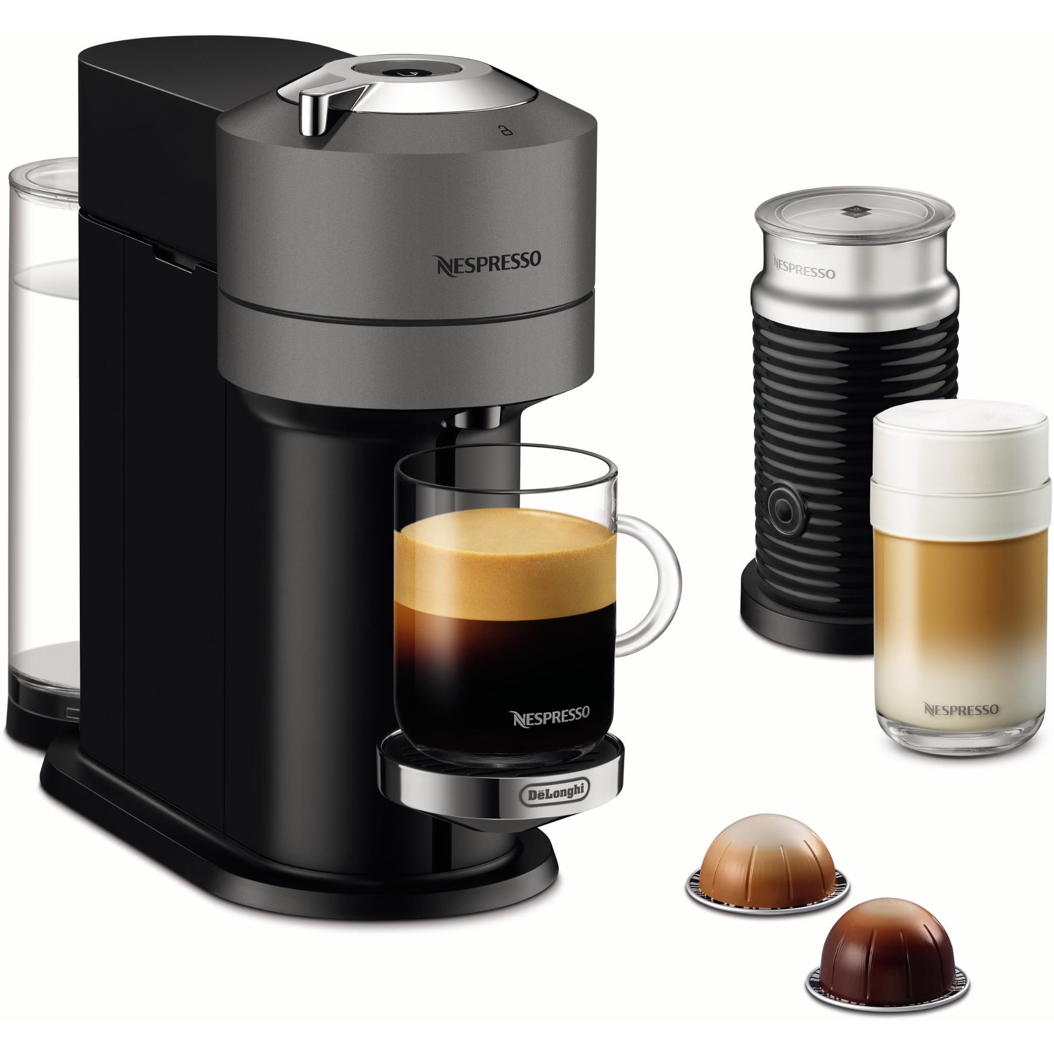 The Vertuo Next can make coffee in 5 different cup sizes and has an adjustable cup support. perfect for tall glasses or mugs. The contemporary design is minimal and sophisticated and the compact 15cm footprint make this suitable for most kitchen benchtops or small home office.