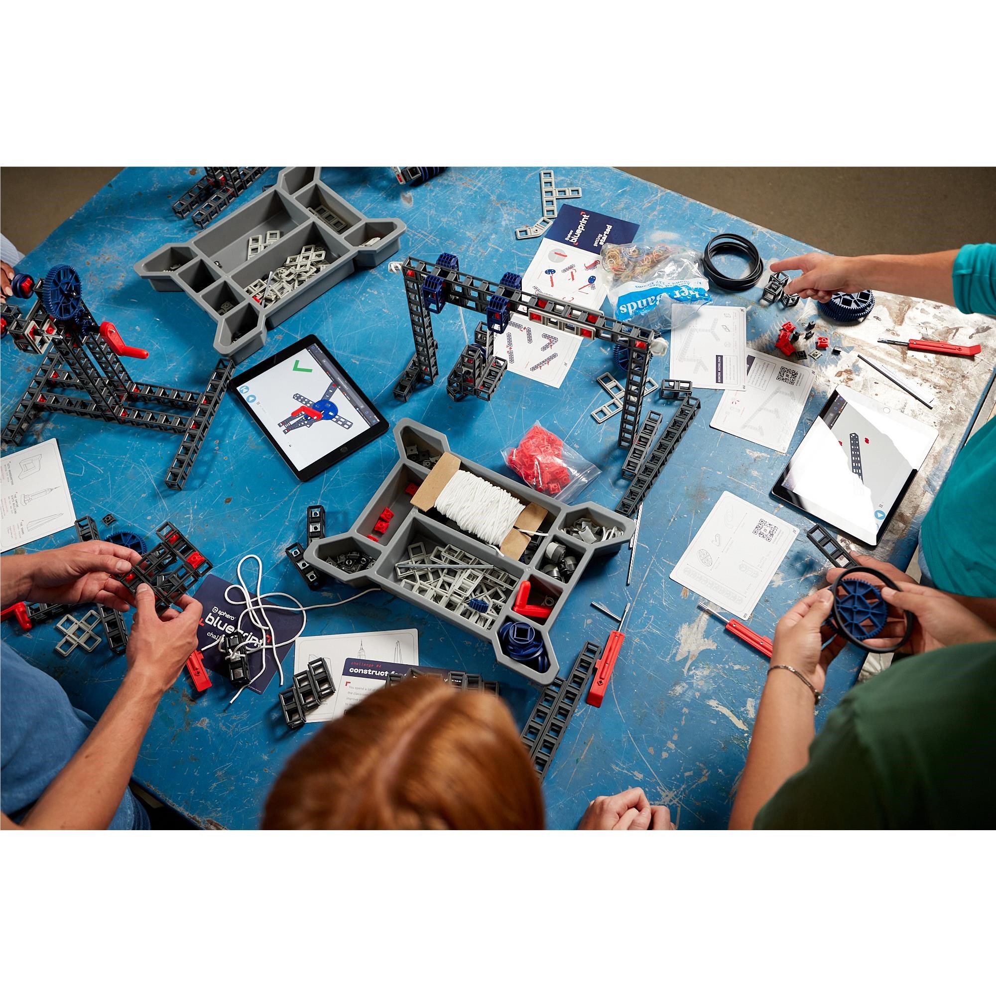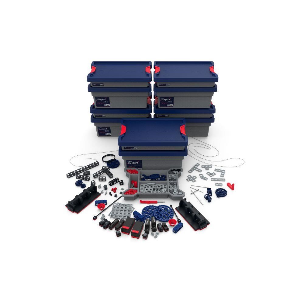 Each of the 5 kits offers students a toolbox of 355 mechanical parts and 17 electrical Bits. a Quick Start Guide. and engineering challenges to introduce students to prototyping. Customise the Blueprint experience based on skill level and subject area. Blueprint is perfect for beginners learning about powered and unpowered simple machines. yet scalable to the needs of advanced learners engaging in more complex topics such as control systems and digital electronics.