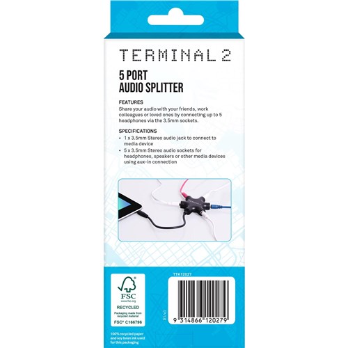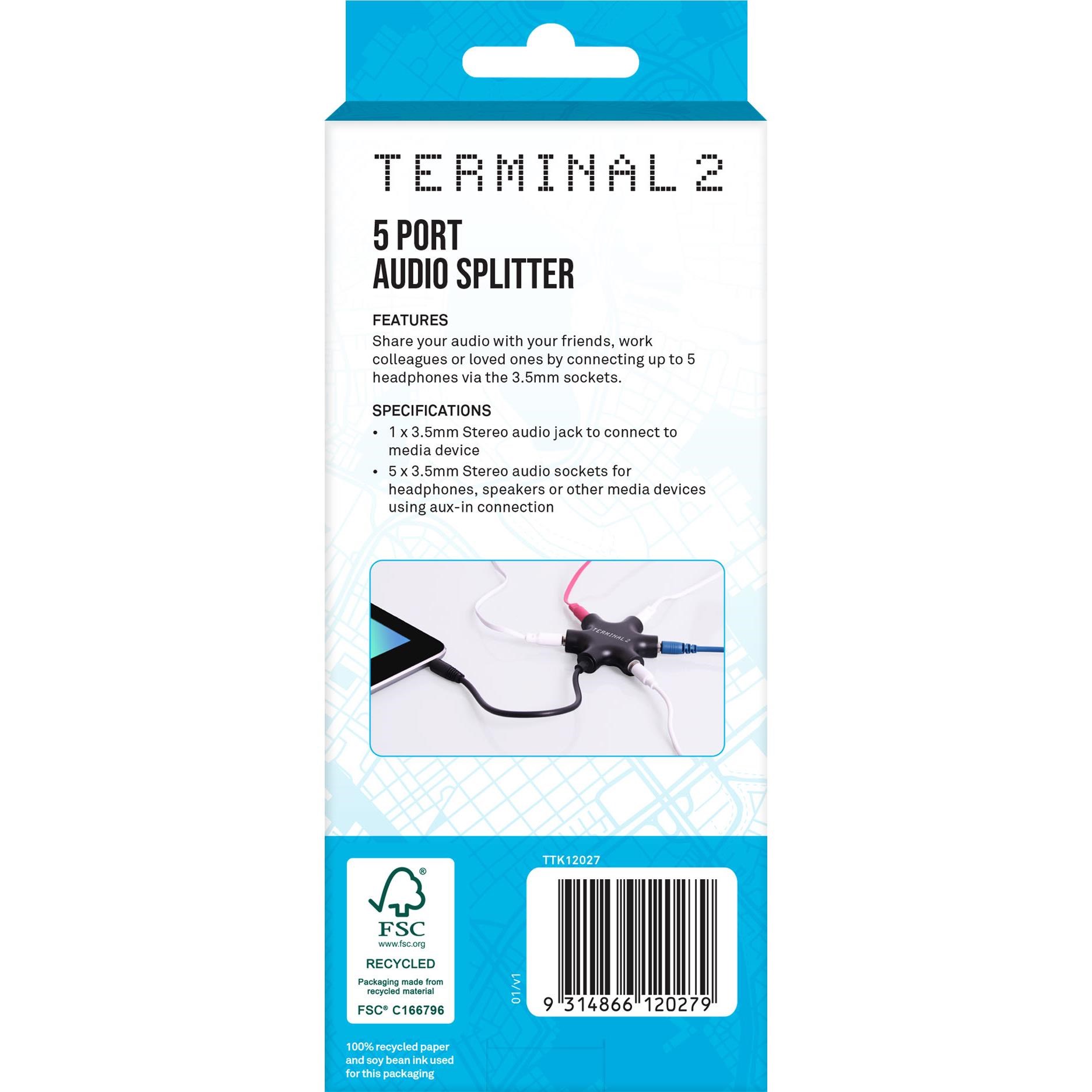 Share audio from 1 device to up to 5 headphones