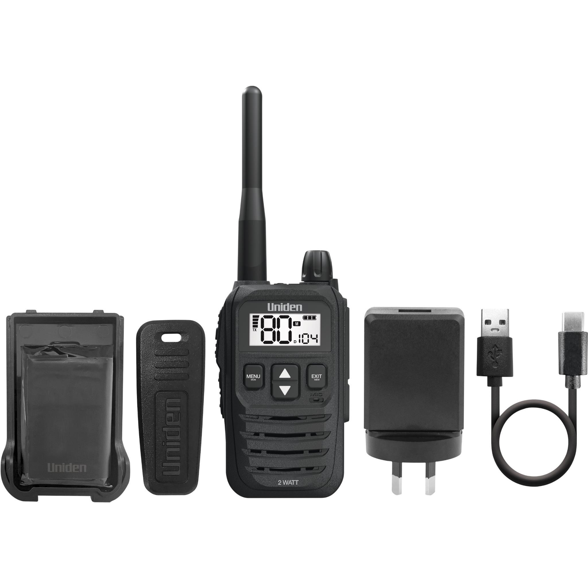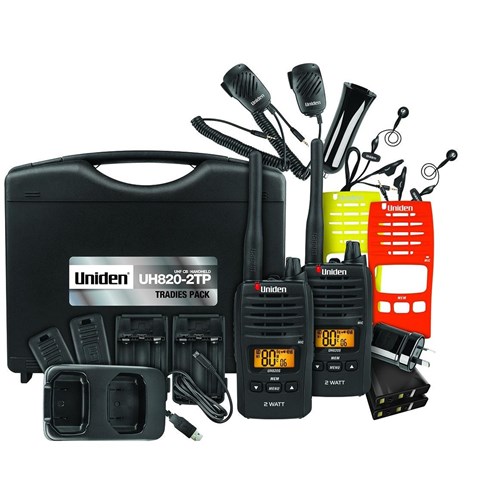 Presenting Uniden’s latest in UHF technology. The UH825-2TP is a compact 80 Channel 2 Watt hand-held radio built for rugged Australian and New Zealand conditions making it ideal for Commercial Use. Hiking. Construction Sites and Restaurants. With the finest components. unique engineering and styling. the UH825-2TP offers outstanding performance adaptable in various conditions and situations. The UH825-2TP now comes in a Tradies Pack with all the accessories you need to keep connected.