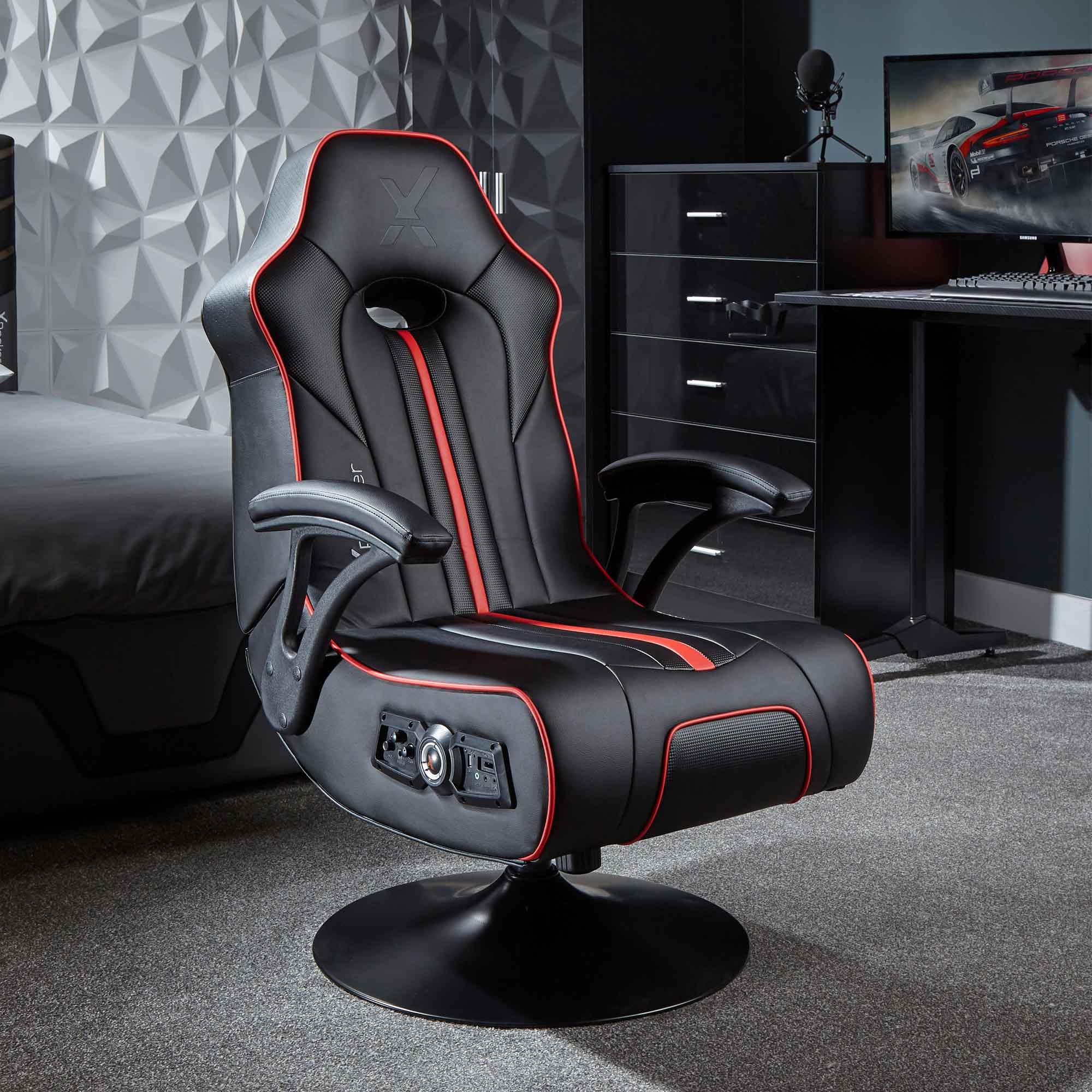 The X Rocker Torque 2.1 is an attractive gaming chair with a wireless/Bluetooth 2.1 audio system that connects to all your favourite games consoles from PlayStation. Xbox or Nintendo. Whilst the sound-reactive vibration motors enhances your gaming experience. and deeply padded arm rests and seat provides superior comfort for long gameplay sessions.